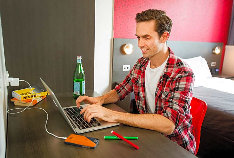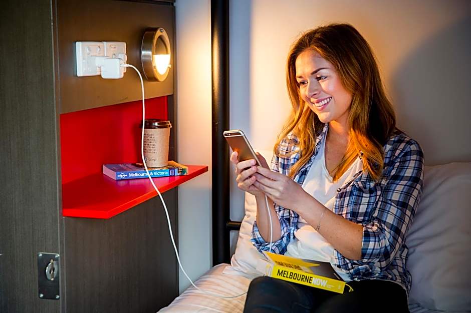 This private queen room offers a 50-inch LED TV and sweeping views of the Melbourne City skyline. It features a wardrobe, a mini refrigerator and tea/coffee making facilities. This room offers a private modern private bathroom.